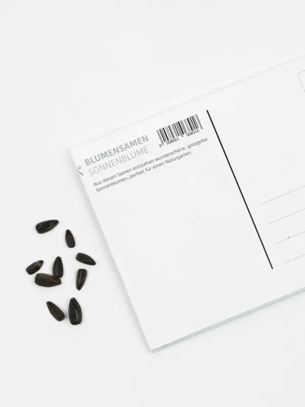 Postkarte mit Sonnenblumensamen – Held des Alltags