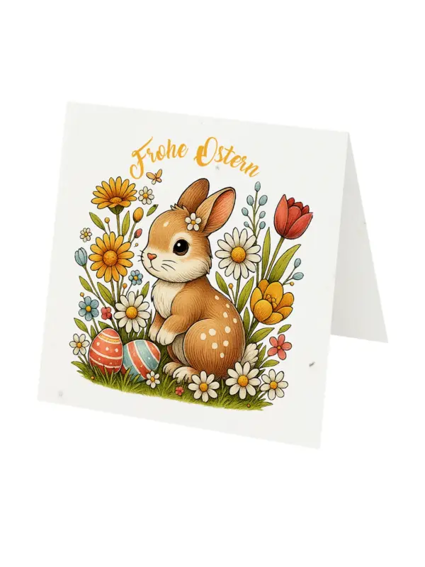 Kleine Klappkarte aus Samenpapier – Frohe Ostern Hase