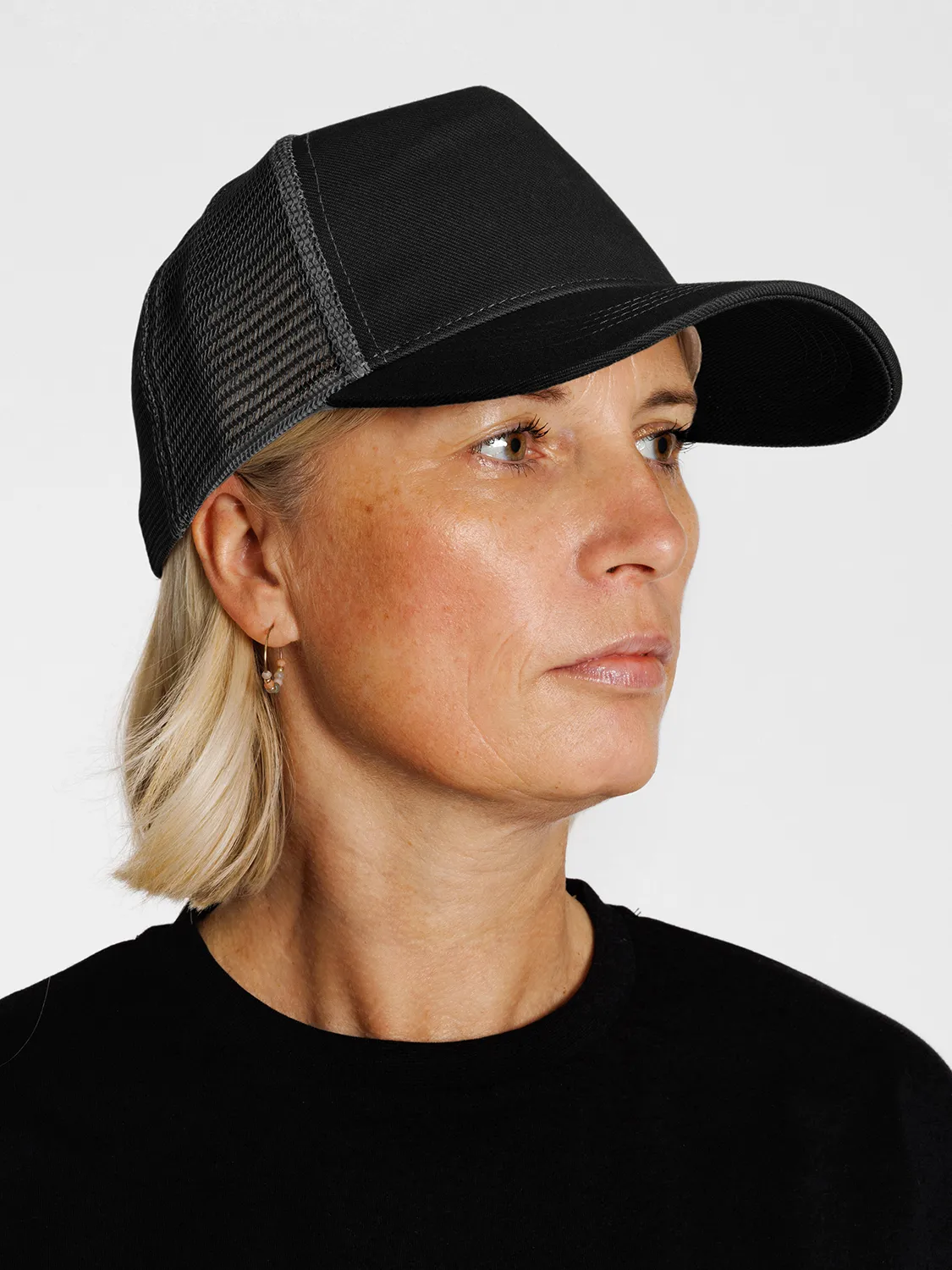 Eigenschaften: Mesh Kappe mit Snapback-Verschluss zur Größenanpassung, Vorderseite aus 100 % Bio-Baumwolle, Mesh aus 100 % recyceltem Polyester.