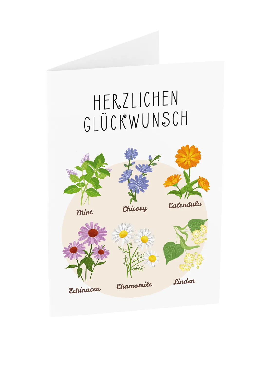 Dank verspieltem Blumen-Design und „Herzlichen Glückwunsch“ Print eignet sich diese Klappkarte hervorragend als Präsent.