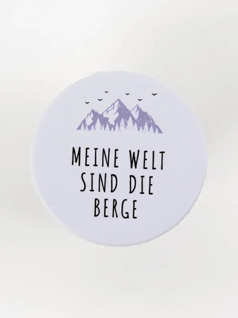 Bergmotiv und Spruch „Meine Welt sind die Berge“