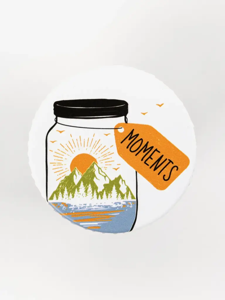 Landschaftsmotiv und Schriftzug „Moments“