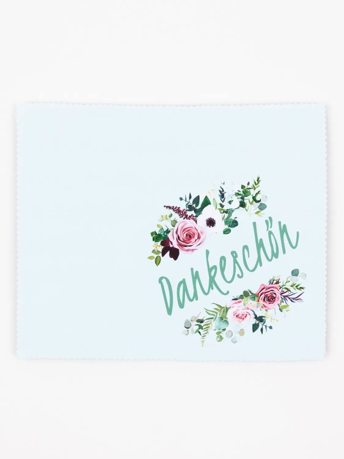 Durch die Aufschrift „Dankeschön“ eignet sich dieses praktische Mikrofasertuch hervorragend als Geschenk.