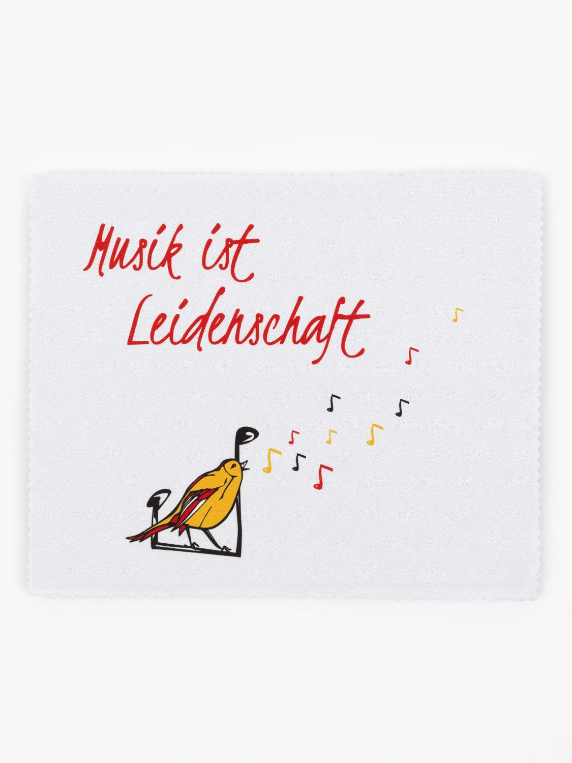 Der verspielte Aufdruck mit dem Schriftzug „Musik ist Leidenschaft“, macht dieses Mikrofasertuch zum unverzichtbaren Accessoire fürs Brillenetui.