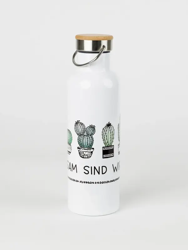Eigenschaften: Edelstahl, isolierend, mit Deckel und Trinkhalm, praktischer Henkel