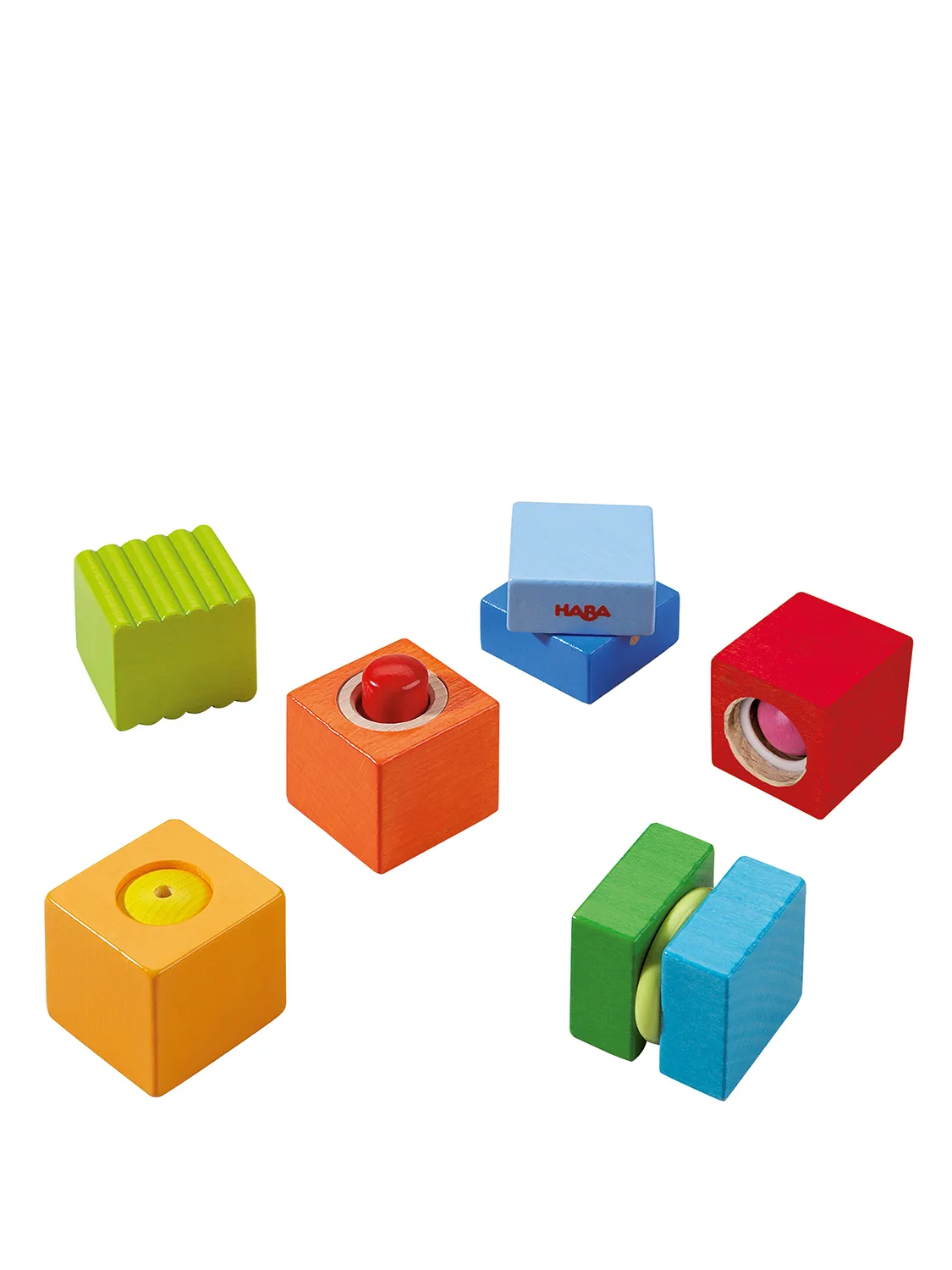 Dieses nachhaltige Holzspielzeug von HABA bietet eine Menge zu entdecken. Quietschen, klappern, klingeln, rattern… Jeder Würfel hält einen anderen akustischen Effekt bereit. Die bunten Holzklötze liegen gut in den Händen von Kleinkindern und fördern die frühkindliche Wahrnehmung sowie ihren Sinn für Musikalität.