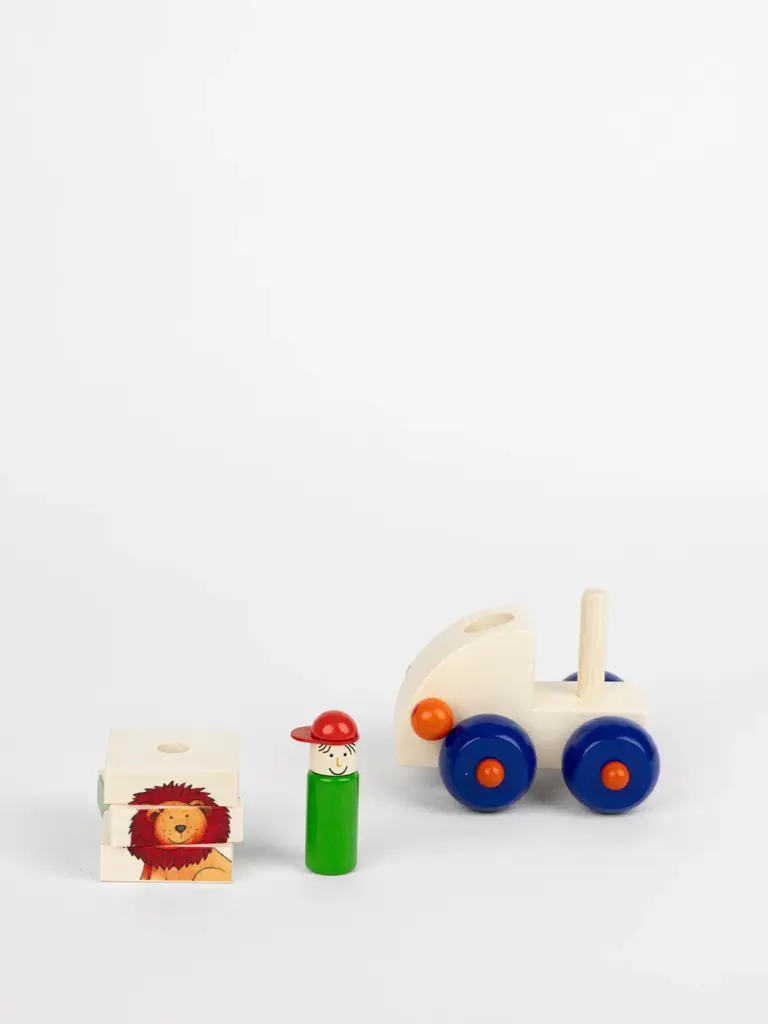 Dieses nachhaltige Holzspielzeug von Weizenkorn bietet jede Menge zu Entdecken. Ob das Zusammensetzen der Bausteine mit Tiermotiven, die herausnehmbare Figur oder die sich drehenden Scheinwerfer – das Fahrzeug aus Holz garantiert langanhaltenden Spielspaß. Durch das Rollen und Stapeln werden kognitive und motorische Fähigkeiten von Kindern ab einem Jahr spielerisch geschult.