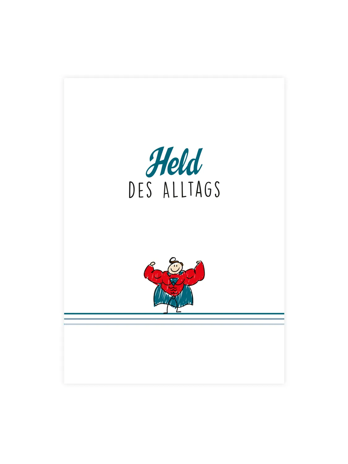 Der Schriftzug „Held des Alltags“ macht diese Geschenkkarte zu einem originellen Präsent.
