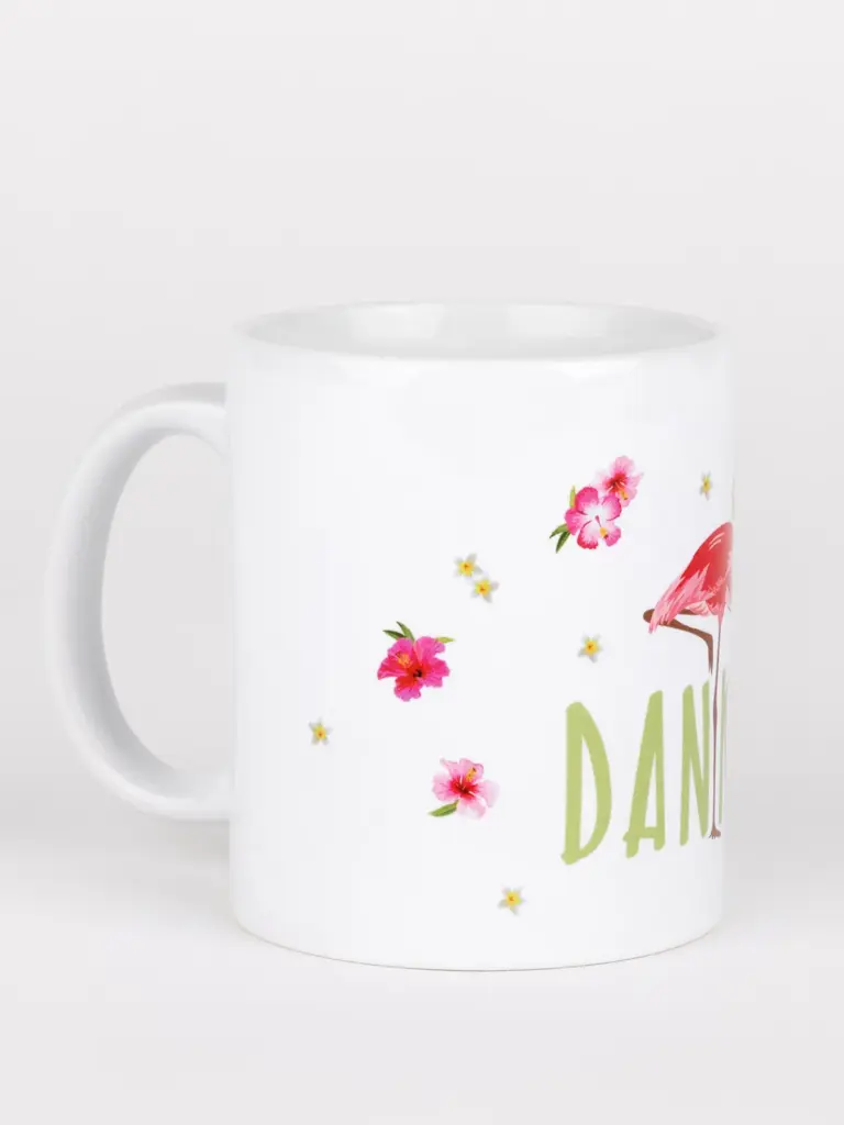 Durch das farbenfrohe Flamingo-Design mit der Aufschrift „Danke“ eignet sich diese Tasse hervorragend als Geschenk.