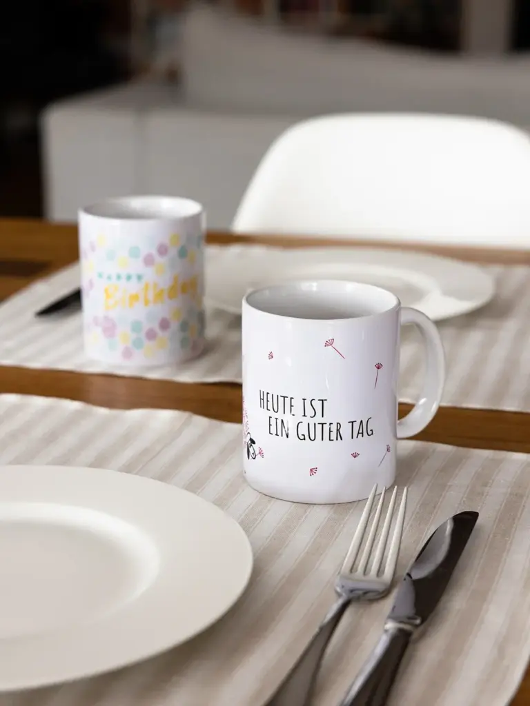 Durch die Aufschrift „Heute ist ein guter Tag“, eignet sich diese Tasse hervorragend als Geschenk.
