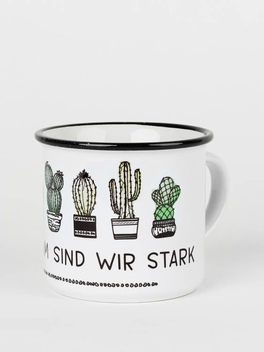 Für alle, die den Retro-Look von Emailletassen lieben, aber nicht auf die Vorteile einer Keramiktasse verzichten wollen. Diese Tasse mit dem Aufdruck „Gemeinsam sind wir stark“ ist eine geschickte Kombination aus Design und Funktion.