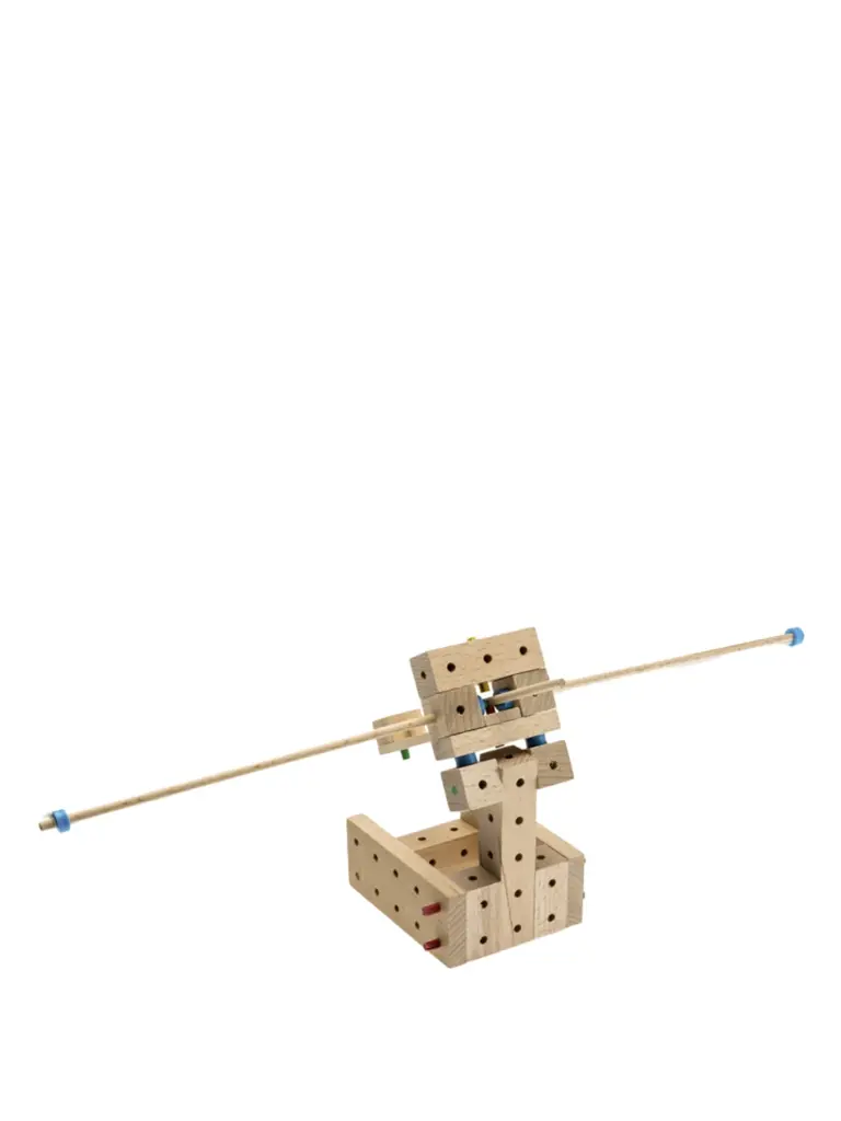 Egal ob man zusammen oder alleine konstruiert – mit Matador Catapults vergehen Stunden wie im Flug. Der Konstruktionsbaukasten sorgt für Spielspaß, der Kreativität, motorische Fähigkeiten und Verständnis von mechanischen Funktionsweisen kindergerecht fördert. Mit seinen 56 Teilen bietet das Holzspielzeug vielerlei Möglichkeiten, die einzelnen Elemente miteinander zu kombinieren. Das beiliegende Vorlagenheft ermöglicht spielerisches Nachbauen durch gut verständliche, visuelle Bauanleitungen. Erfolgserlebnisse sind mit dem Matador Catapulte Explorer vorprogrammiert.