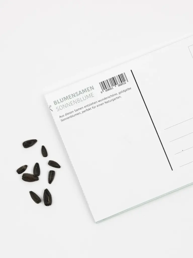 Postkarte mit Sonnenblumensamen – Glückwünsche