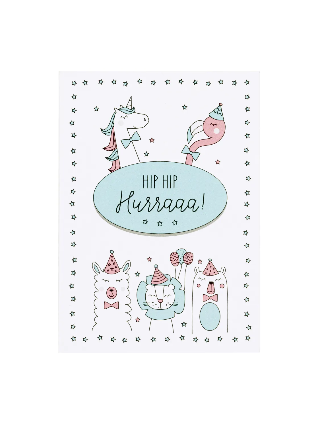 Postkarte mit Sonnenblumensamen – Hip Hip Hurraaa