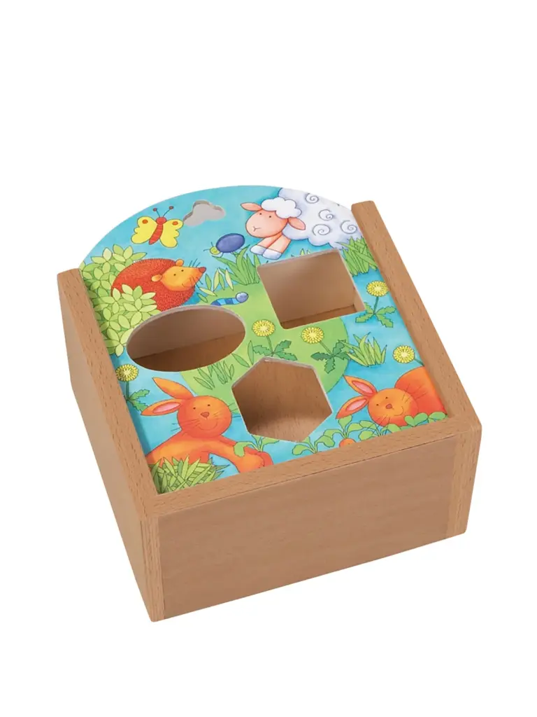 Was fressen Katze, Huhn und Schaf am liebsten? Das finden kleine Entdecker mit der Sortierbox Tiere heraus, denn nur das richtige Futter passt durch die jeweilige Öffnung der Sortierbox. Die großen Holzsteine wecken die kindliche Neugier, fördern die Sinne und schulen die Feinmotorik.