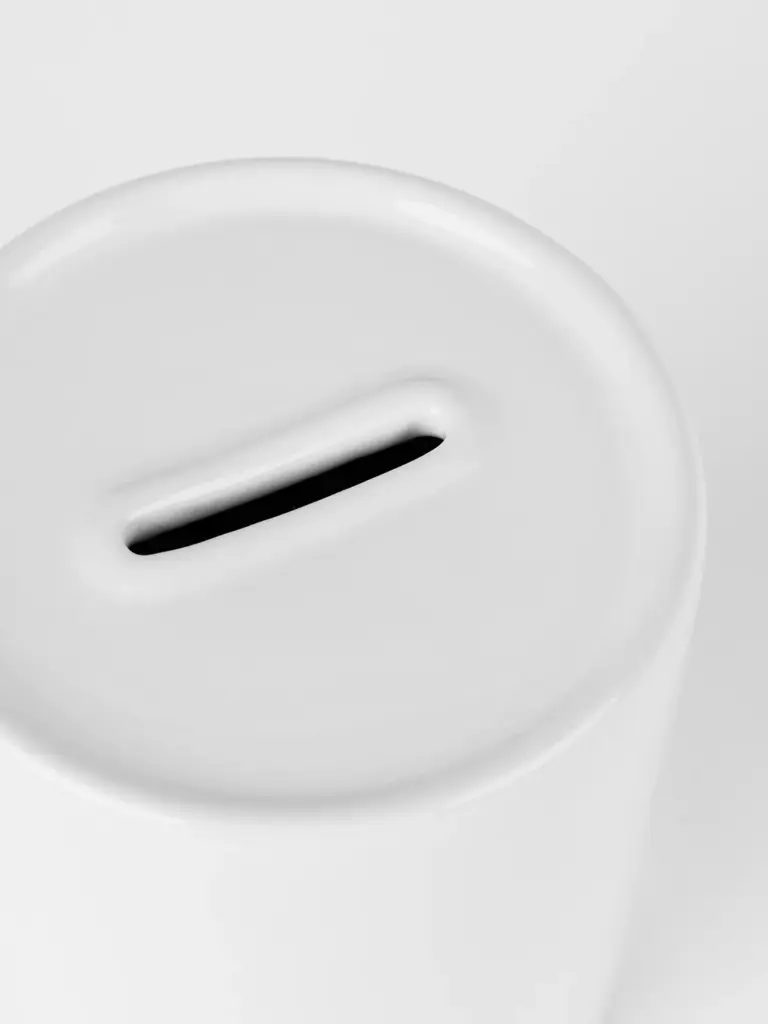 Eigenschaften: Spardose aus Keramik mit Einwurfschlitz und Gummiverschluss am Boden