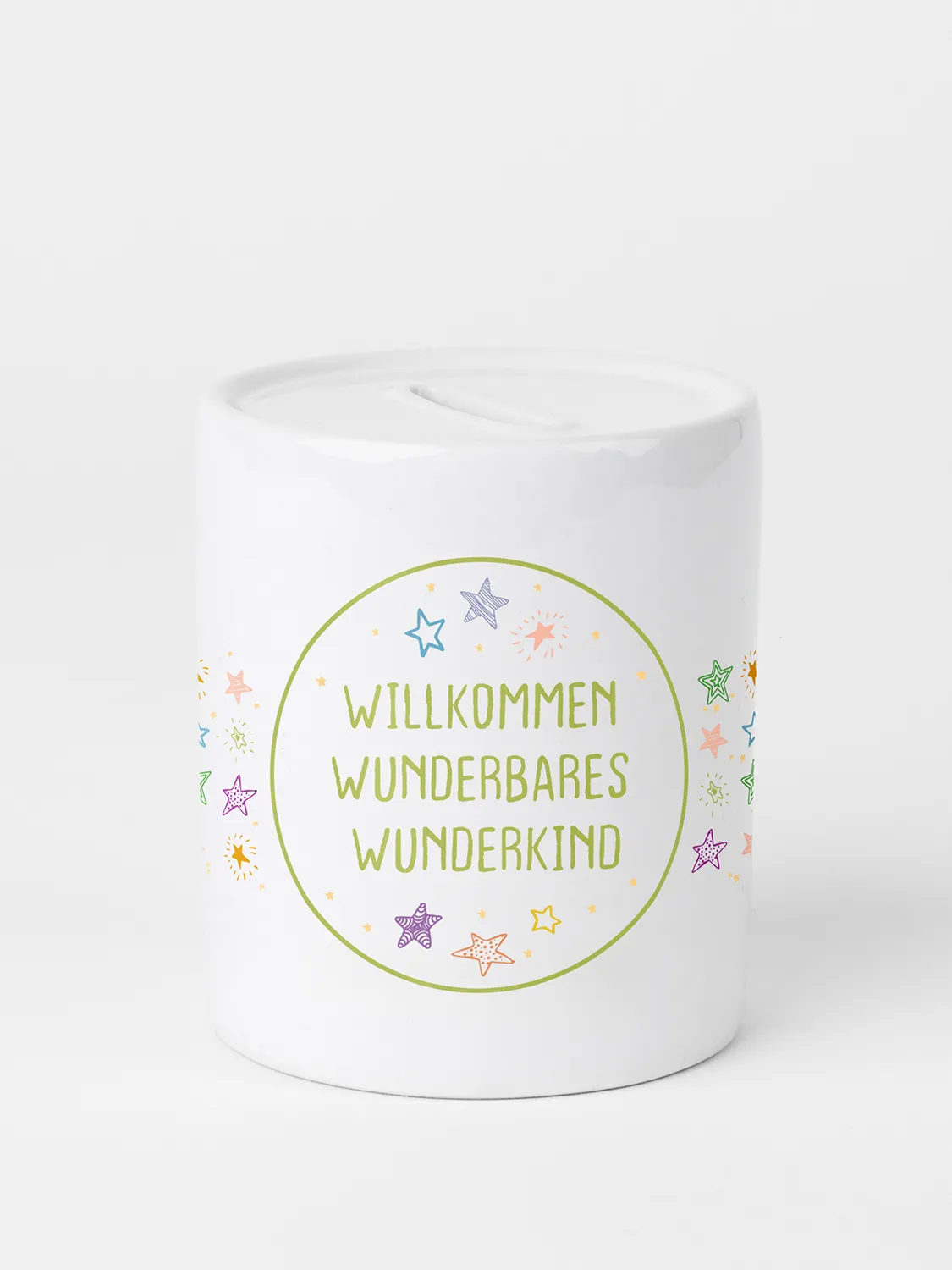 Auf der Suche nach einer originellen Art Glückwünsche zur Geburt zu überbringen? Mit dieser Keramikspardose gelingt das garantiert. Ein Sternchenmuster mit der Aufschrift „Willkommen wunderbares Wunderkind“ sorgt für Freude am Sparen und macht dieses Geschenk zu einem stilvollen Deko-Highlight.