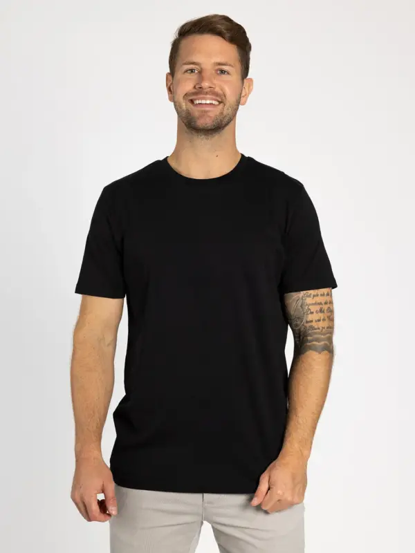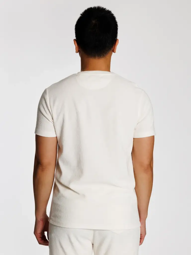 Mit einem geraden Schnitt, kurzen Ärmeln und einem gerippten Rundhalsausschnitt passt dieses Oberteil zu jeder Gelegenheit – perfekt zu den passenden Frottee-Shorts, zur Jeans oder einer Chino.