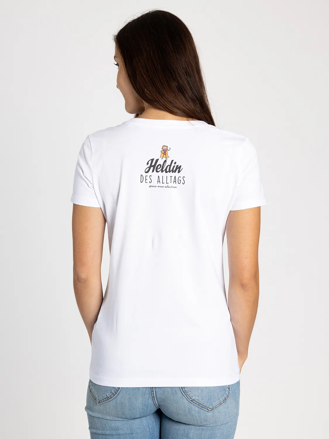 Der Aufdruck „Heldin des Alltags“ und die tolle Passform machen dieses Damenshirt zu einem echten Lieblingsstück.