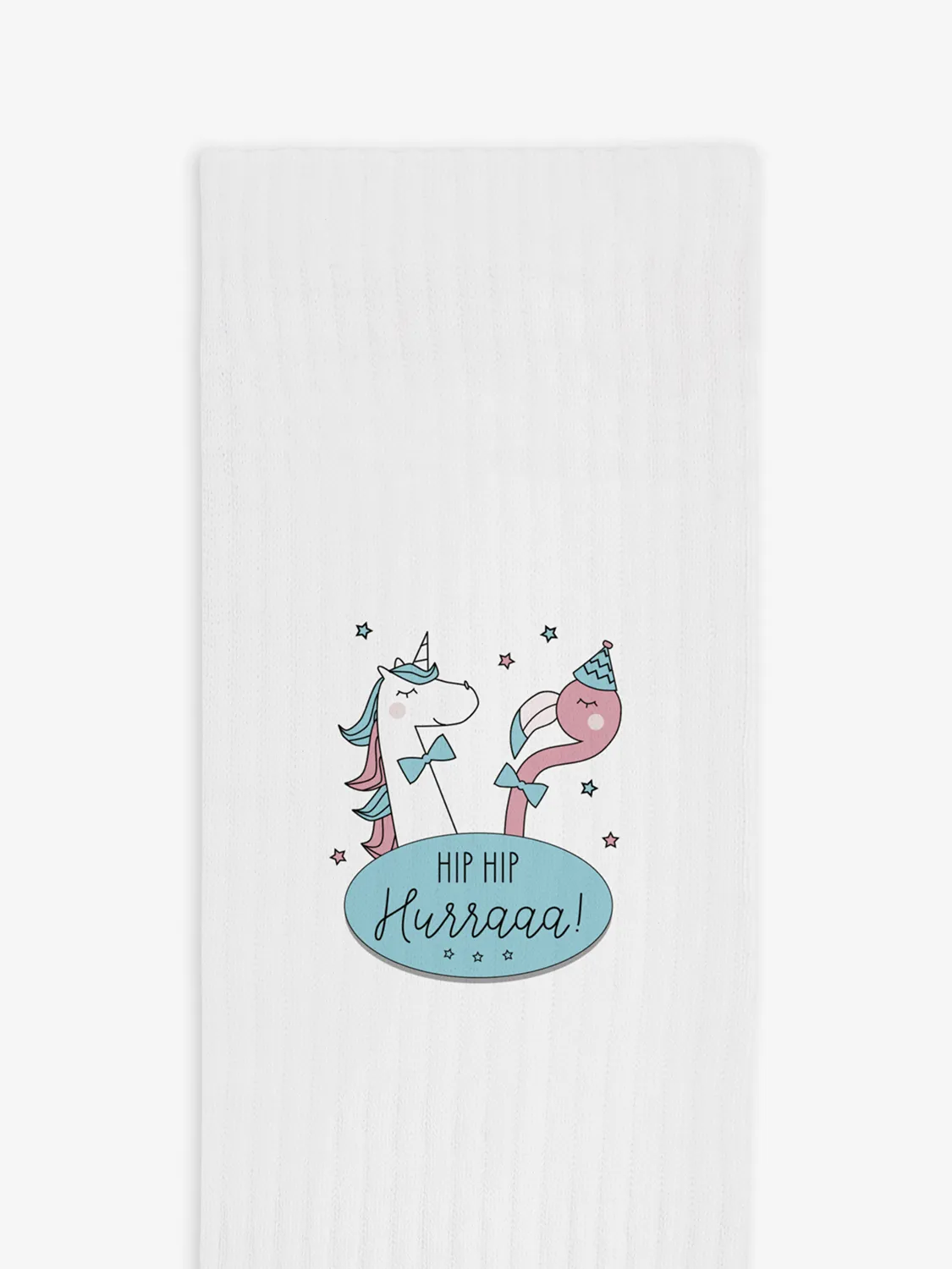 Eigenschaften: Weiße Tennissocken, Motiv an den beiden Außenseiten, Fußbereich frottiert und aus 100 % Bio-Baumwolle
