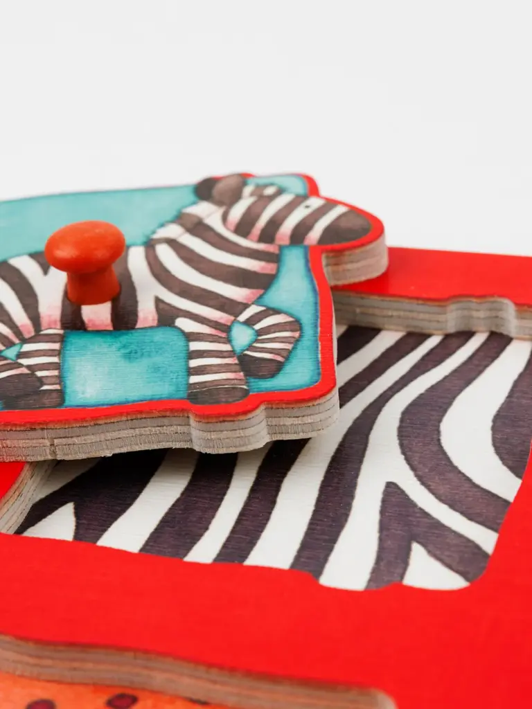 Vier süße Tiermotive machen dieses nachhaltige Holzspielzeug zu einem großartigen Puzzle für Kinder ab 3 Jahren. Spielerisch fördert es die Auge-Hand-Koordination und Feinmotorik und sorgt zudem für altersgerechtes Puzzlevergnügen.
