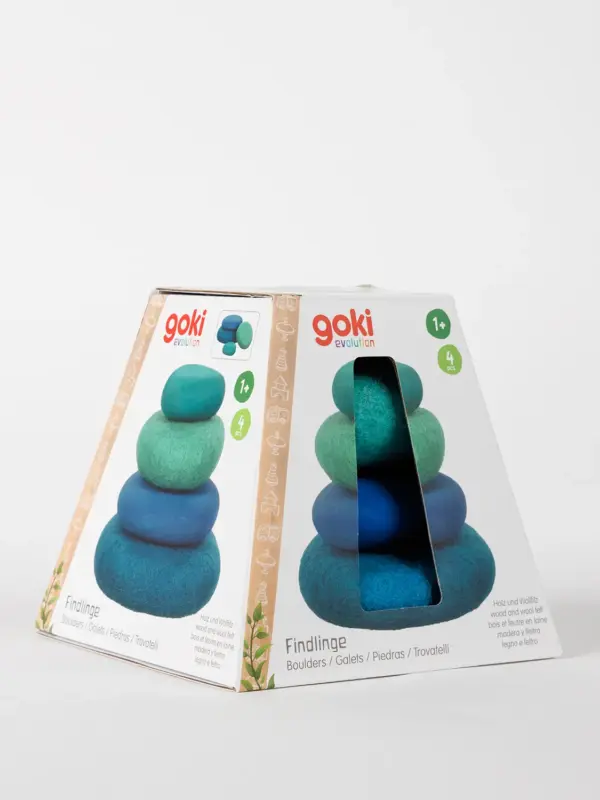 Stapelspielzeug aus Holz und Wollfilz – Findlinge